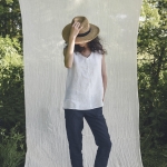 Bluzka lniana bez rękawa w kolorze białym, uszyta z tkaniny lnianej zmiękczanej.