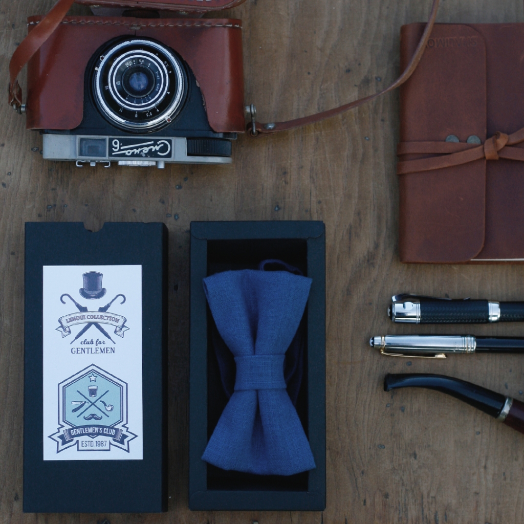 Lniana muszka to stylowy dodatek do prezentowanych na naszej stronie męskich koszul oraz kamizelek. Będzie wyjątkowym prezentem świątecznym lub urodzinowym.