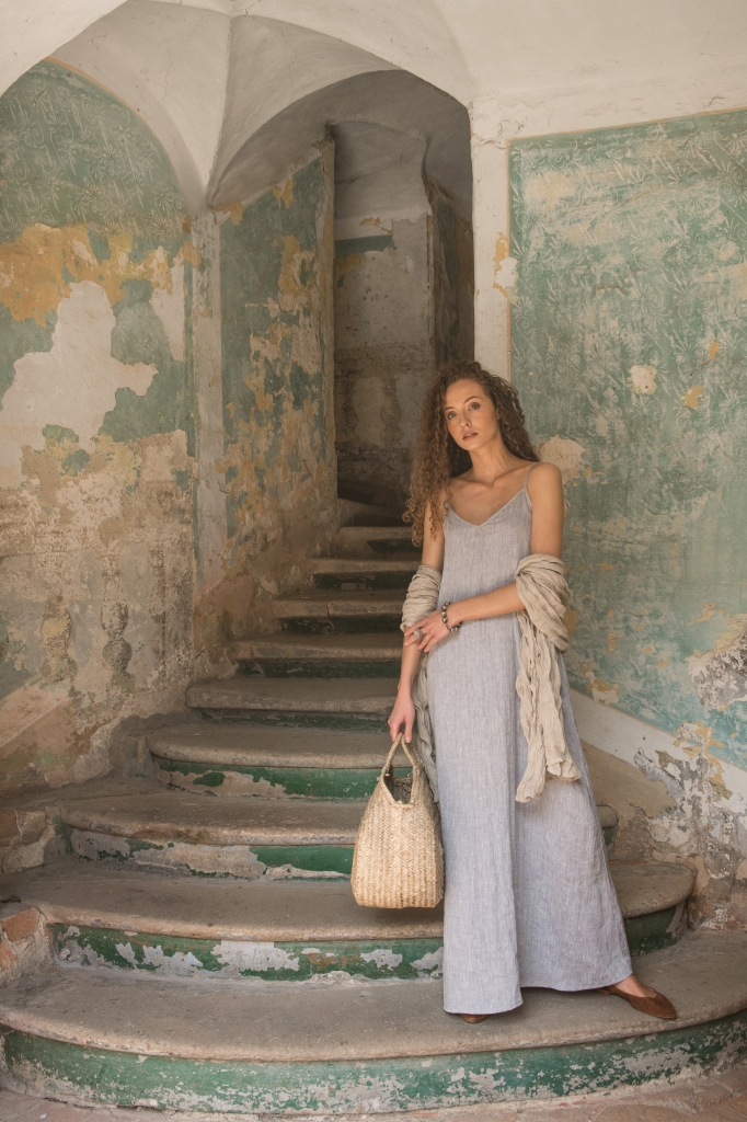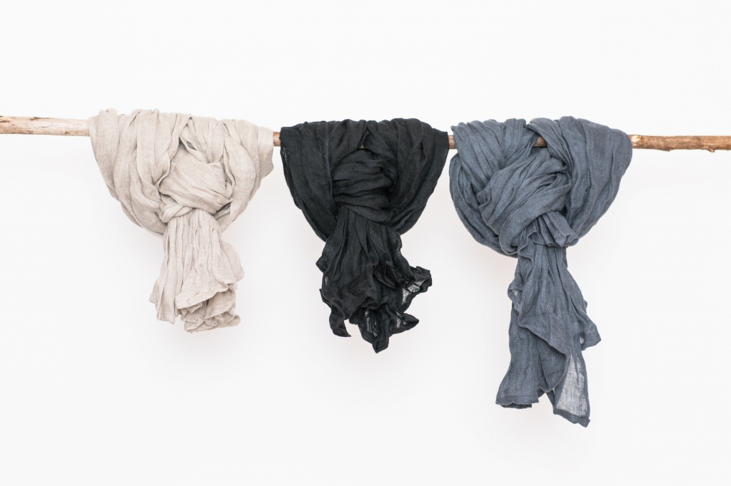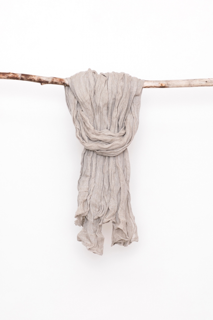 Szal lniany z bardzo miękkiej i delikatnej siatki lnianej kreszowanej w kolorze naturalnym o rozmiarze ~75cm x 200cm
