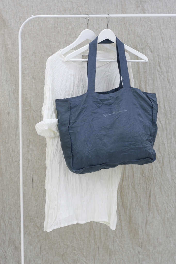 Torba lniana uszyta jest z miękkiej tkaniny lnianej w kolorze grafitowym.